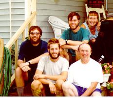 Visiting with Tom Levardi, friend of hikers, in Dalton, Mass. Left to right is me (Snail-No-More), Illinois, Sneakers, Tom Levardi, and Little Bear.