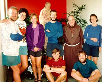 Group shot at the Graymoor Friary. Back row is Quixote, Halfway, Noodle, Illinois, Friar Fred (I Think), and Slap Happy. Front row is Sneakers and Me (Snail-No-More).