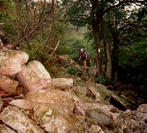Part of the climb out of Lehigh Furnace Gap in Pennsylvania. Following these blazes takes you to an EPA Superfund cleanup site known as 'Dante's Inferno' by hikers.